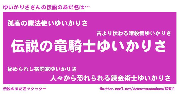 | 意味不明あだ名 | 『ペロリンゆいかりさ』『自称ゆいかりさ』 |