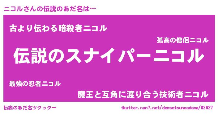 | 胡散臭い通販商品みたいなあだ名 | 『必ず成功する霊験あらたかなお札…その名も「ニコル」』 |