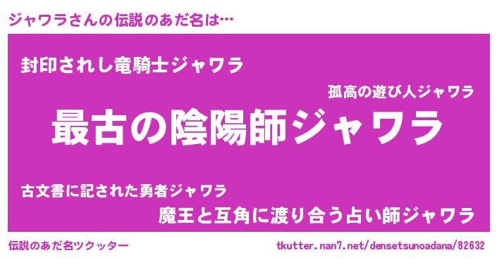 | 女子向けラノベタイトル風あだ名 | 『乙女ゲームの破滅フラグしかない悪役ジャワラに転生してしまった…』 |
