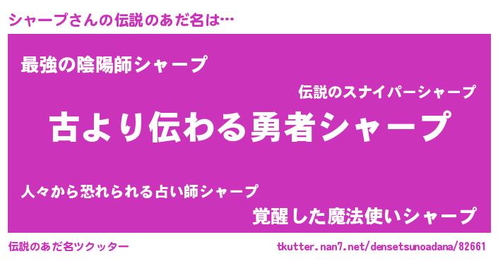 | 胡散臭い通販商品みたいなあだ名 | 『来世でも幸せになれる水素水…その名も「シャープ」』 |
