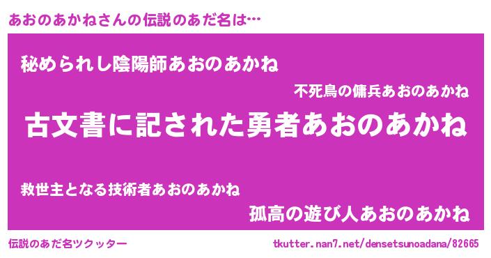 | 意味不明あだ名 | 『永久保存あおのあかね』 |
