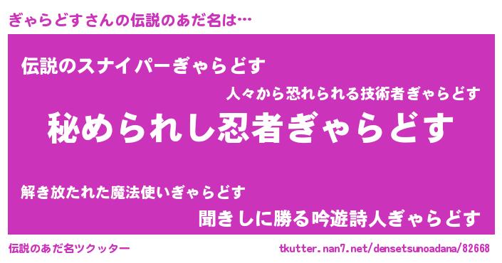 | 女子向けラノベタイトル風あだ名 | 『ぎゃらどすの雑貨屋さん』 |