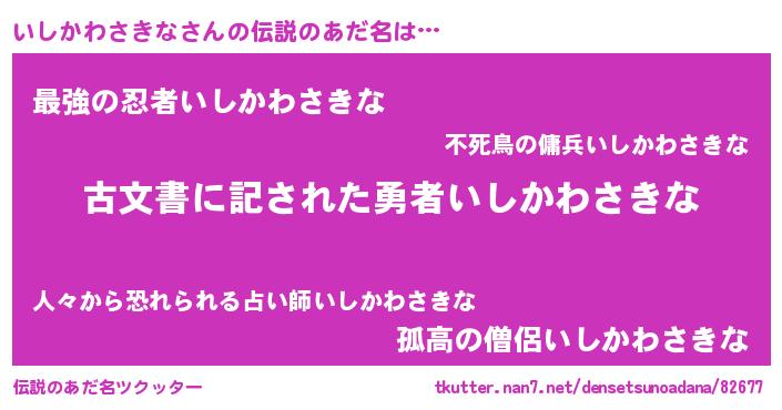 | 意味不明あだ名 | 『住所不定無職いしかわさきな(85歳)』 |