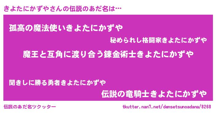 | 意味不明あだ名 | 『自称きよたにかずや』 |