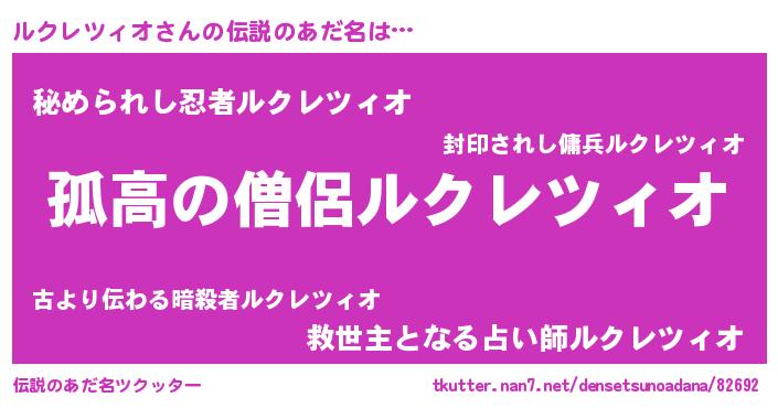| 胡散臭い通販商品みたいなあだ名 | 『信頼と実績のネックレス…その名も「ルクレツィオ」』 |
