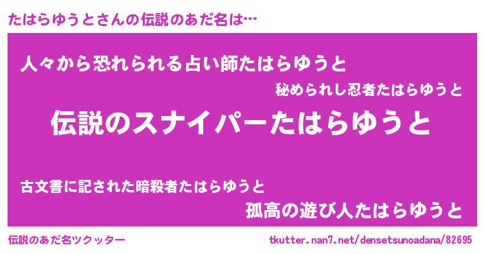 | 胡散臭い通販商品みたいなあだ名 | 『必ず成功する霊験あらたかなお札…その名も「たはらゆうと」』 |