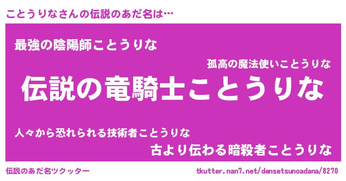 | ヒーロー風カッコイイあだ名 | 『スーパーコトウリナ』『ネオコトウリナ』 |