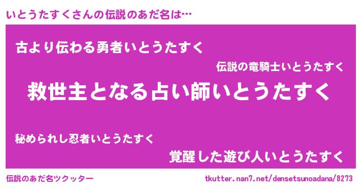 | 女子向けラノベタイトル風あだ名 | 『いとうたすくストレイドッグス』 |