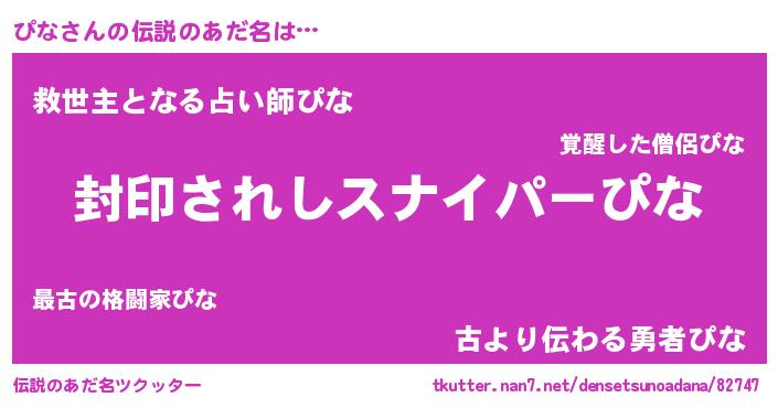| 胡散臭い通販商品みたいなあだ名 | 『億万長者になれる霊験あらたかなお札…その名も「ぴな」』 |