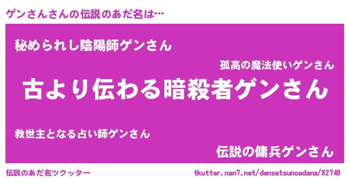 | ファンタジー風あだ名 | 『ゲンディッシュ』『ゼゲントゥ』 |