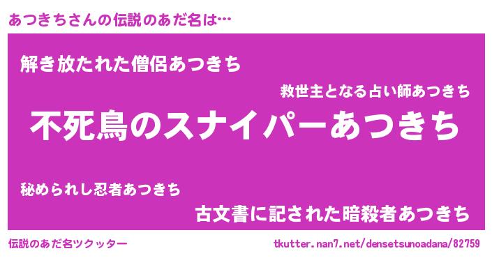 | 胡散臭い通販商品みたいなあだ名 | 『モテモテ間違いなし霊験あらたかなお札…その名も「あつきち」』 |