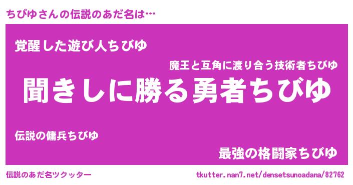 | 男性向けラノベタイトル風あだ名 | 『ちびゆという概念が存在しない退屈な世界 』 |