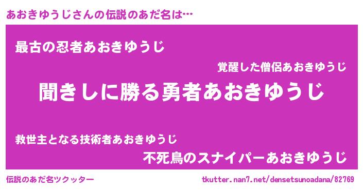 | 意味不明あだ名 | 『住所不定無職あおきゆうじ(85歳)』 |