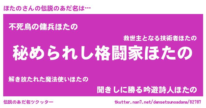 | ファンタジー風あだ名 | 『エターナルホタノー』『ホタフェル』 |