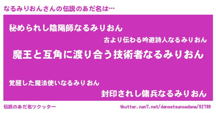 | 意味不明あだ名 | 『眠気覚ましガムなるみりおん味』 |