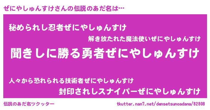 | 意味不明あだ名 | 『永久保存ぜにやしゅんすけ』 |
