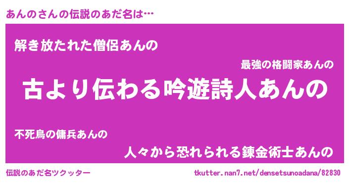 | 女子向けラノベタイトル風あだ名 | 『あんのの契約王妃』『闇のあんの』 |