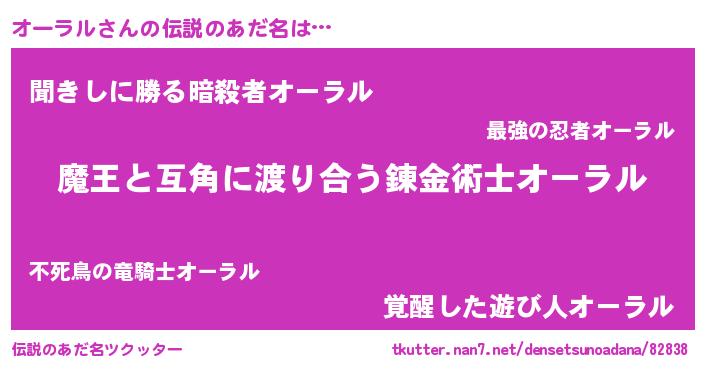 | 女子向けラノベタイトル風あだ名 | 『オーラル恋絵巻』『オーラル様がみてる』 |