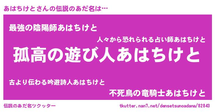 | 意味不明あだ名 | 『とにかく怪しいあはちけと』 |