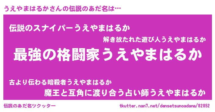| 意味不明あだ名 | 『ヨモギ科うえやまはるか属』 |