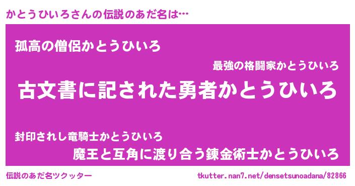 | ヒーロー風カッコイイあだ名 | 『究極戦士カトウヒイロ』『幻影騎士カト』 |