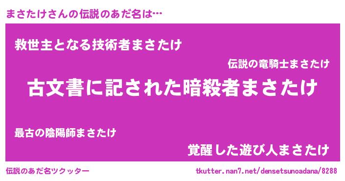 | ヘコむあだ名 | 『まさたけ(爆)』『まさを』『つくし』 |