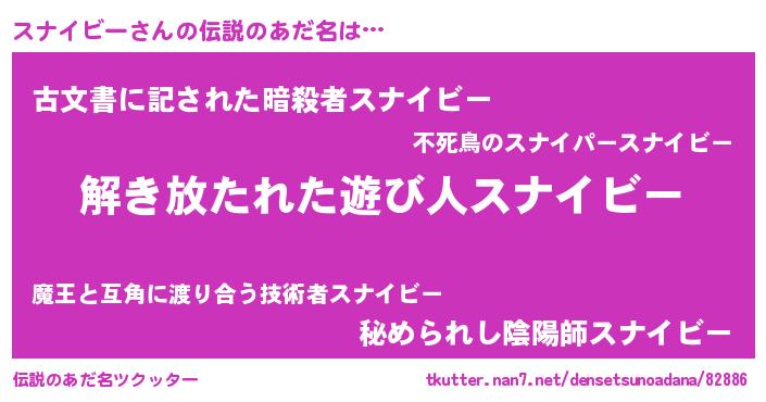| ヒーロー風カッコイイあだ名 | 『最強戦士スナイビー』『炎刃騎士スナ』 |