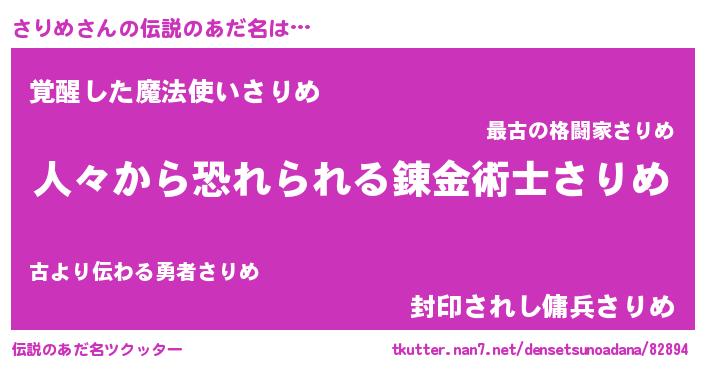 | 意味不明あだ名 | 『自称さりめ』『眠気覚ましガムさりめ味』 |