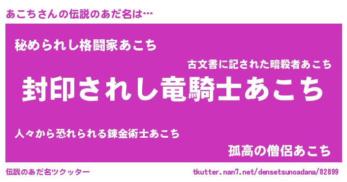 | 男性向けラノベタイトル風あだ名 | 『この素晴らしい世界にあこちを!』 |