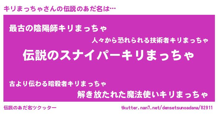 | 胡散臭い通販商品みたいなあだ名 | 『必ず成功する霊験あらたかなお札…その名も「キリまっちゃ」』 |