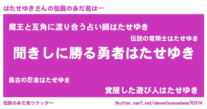 | ヒーロー風カッコイイあだ名 | 『超時空戦士ハタセユキ』『仮面ハタダー』 |