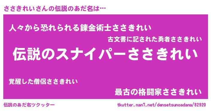 | 胡散臭い通販商品みたいなあだ名 | 『必ず成功する霊験あらたかなお札…その名も「ささきれい」』 |