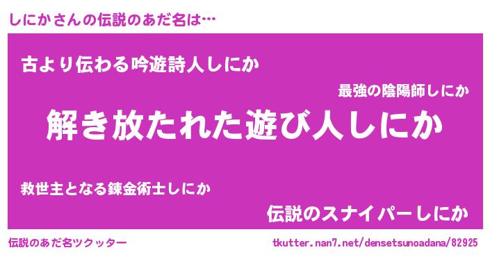 | 意味不明あだ名 | 『住所不定無職しにか(81歳)』 |