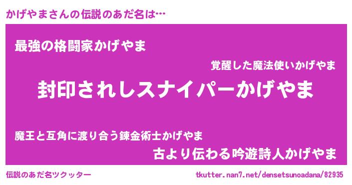| ファンタジー風あだ名 | 『カゲフェル』『エターナルカゲヤマー』 |