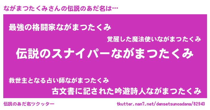 | ヒーロー風カッコイイあだ名 | 『スーパーナガマツタクミ』 |