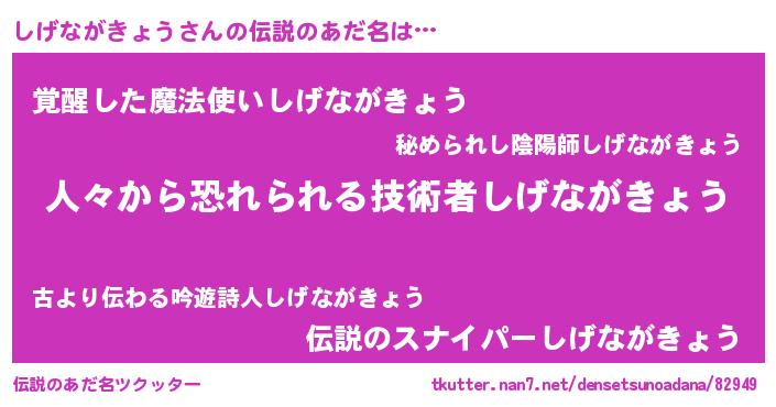| ヒーロー風カッコイイあだ名 | 『友情の使者しげながきょう』 |