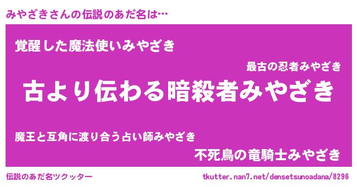 | ヒーロー風カッコイイあだ名 | 『ネオミヤザキ』『銀牙騎士ミヤ』 |