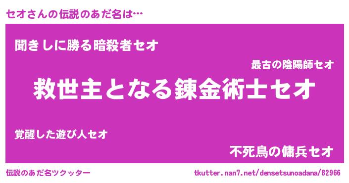 | 胡散臭い通販商品みたいなあだ名 | 『あなたにだけ特別に提供する世界で10本だけ現存している希少なブランデー…その名も「セオ」』 |