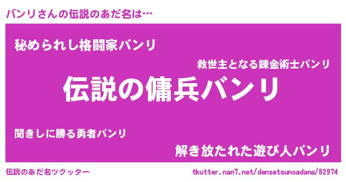 | 男性向けラノベタイトル風あだ名 | 『バンリスレイヤー』『バンリの憂鬱』 |