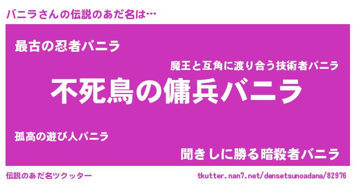 | 意味不明あだ名 | 『住所不定無職バニラ(14歳)』『自称バニラ』 |