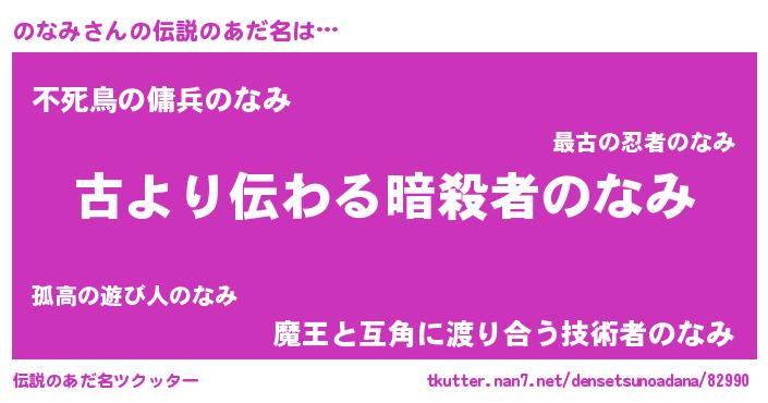 | ヒーロー風カッコイイあだ名 | 『ネオノナミ』『仮面ノナダー』 |