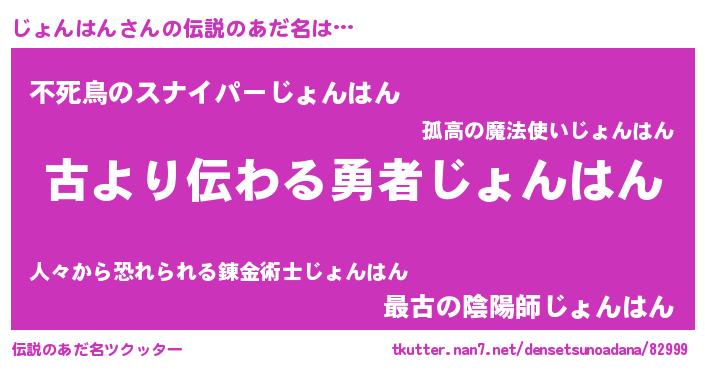 | 意味不明あだ名 | 『永久保存じょんはん』『自称じょんはん』 |