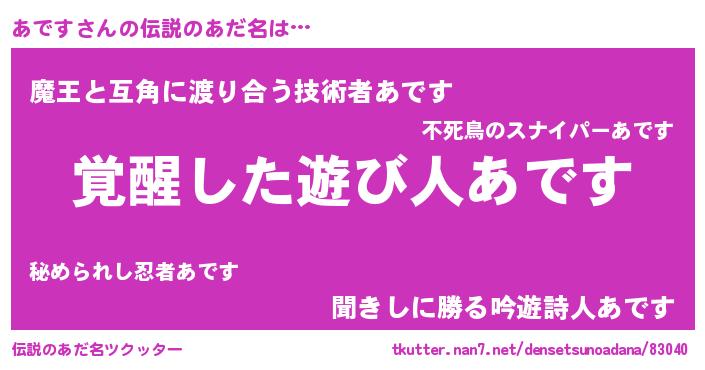 | 意味不明あだ名 | 『ニラ科あです属』『自称あです』 |