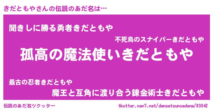 | 男性向けラノベタイトル風あだ名 | 『ダンジョンにきだともやを求めるのは間違っているだろうか』 |