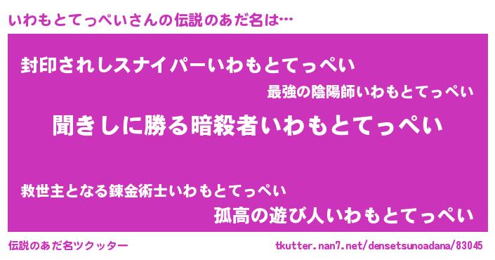| 女子向けラノベタイトル風あだ名 | 『異世界で失敗しない100のいわもとてっぺい』 |
