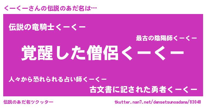 | ヒーロー風カッコイイあだ名 | 『幻影騎士クー』『超時空戦士クークー』 |