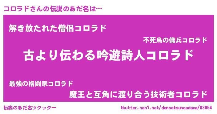 | ヒーロー風カッコイイあだ名 | 『ネオコロラド』『幻影騎士コロ』 |