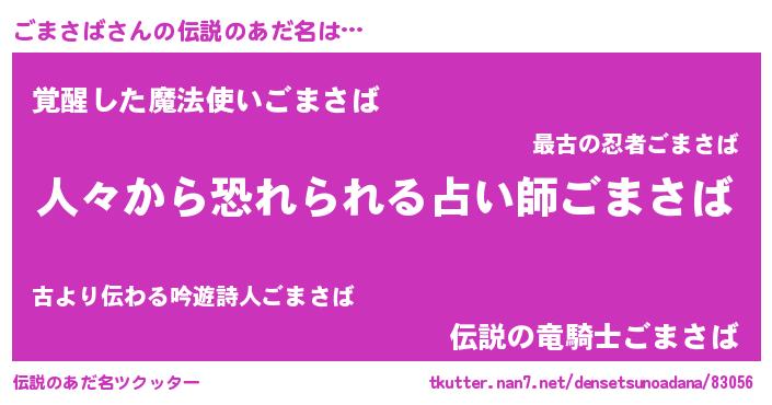 | ヒーロー風カッコイイあだ名 | 『正義の使者ごまさば』『暗黒騎士ゴマ』 |