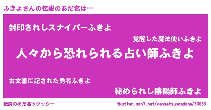 | ヒーロー風カッコイイあだ名 | 『正義の使者ふきよ』『スーパーフキヨ』 |
