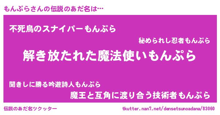 | ヒーロー風カッコイイあだ名 | 『サイバー戦士モンプラ』『魔戒騎士モン』 |